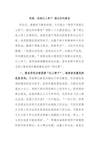 / 【七哥公文】2025年:党课:坚持以上率下 强化作风建设+更多免费公文+VX:QiGeGongWen2024