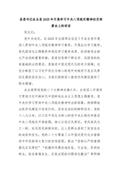 【七哥公文】2025年:县委书记在全县2025年开展学习中央八项规定精神动员部署会上的讲话+更多免费公文+VX:QiGeGongWen2024