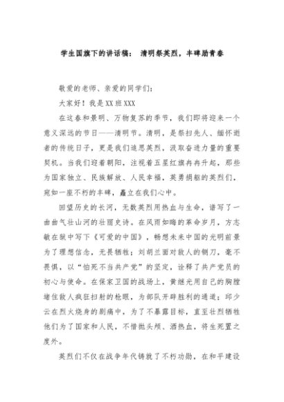 / 【七哥公文】2025年:学生国旗下的讲话稿: 清明祭英烈,丰碑励青春+更多免费公文+VX:QiGeGongWen2024