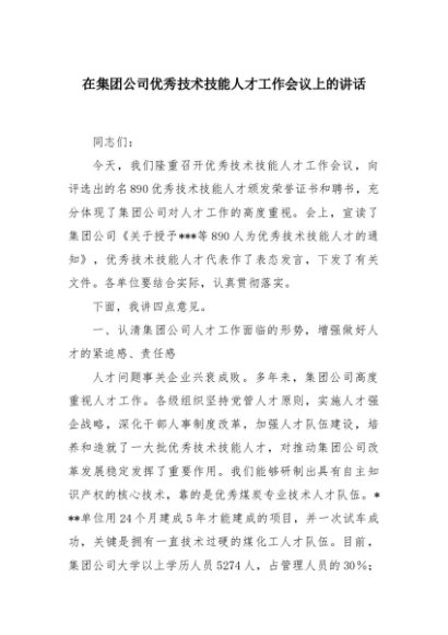 / 【七哥公文】2025年:在集团公司优秀技术技能人才工作会议上的讲话+更多免费公文+VX:QiGeGongWen2024