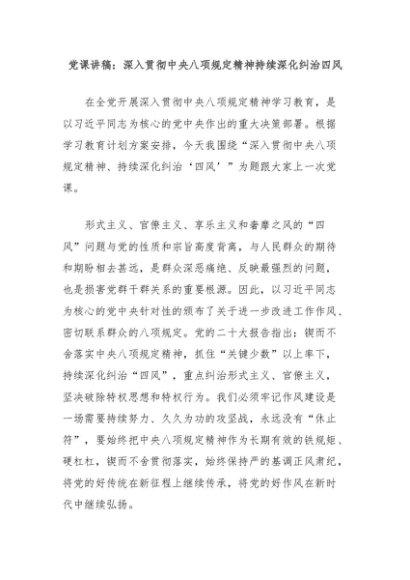 【七哥公文】2025年:党课讲稿:深入贯彻中央八项规定精神持续深化纠治四风+更多免费公文+VX:QiGeGongWen2024