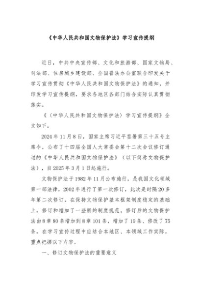 / 【七哥公文】2025年:《中华人民共和国文物保护法》学习宣传提纲+更多免费公文+VX:QiGeGongWen2024