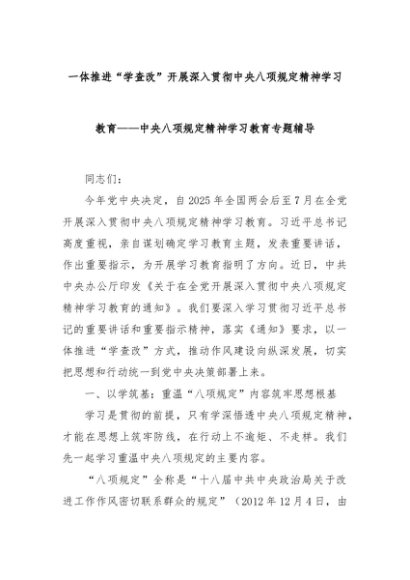 【七哥公文】2025年:一体推进“学查改”开展深入贯彻中央八项规定精神学习教育——中央八项规定精神学习教育专题辅导+更多免费公文+VX:QiGeGongWen2024