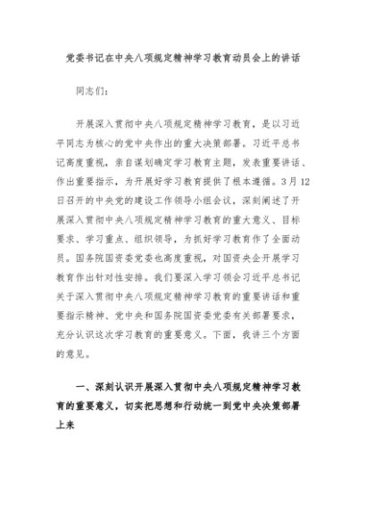 / 【七哥公文】2025年:党委书记在中央八项规定精神学习教育动员会上的讲话+更多免费公文+VX:QiGeGongWen2024
