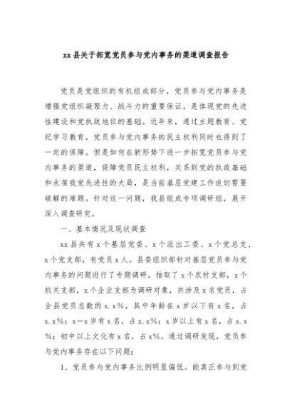 / 【七哥公文】2025年:xx县关于拓宽党员参与党内事务的渠道调查报告+更多免费公文+VX:QiGeGongWen2024