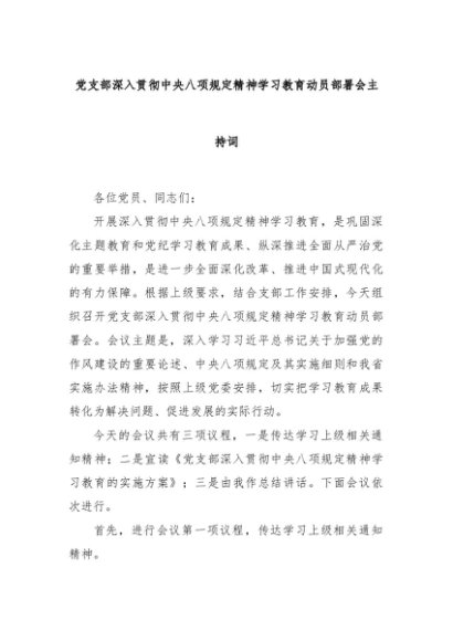 【七哥公文】2025年:党支部深入贯彻中央八项规定精神学习教育动员部署会主持词+更多免费公文+VX:QiGeGongWen2024