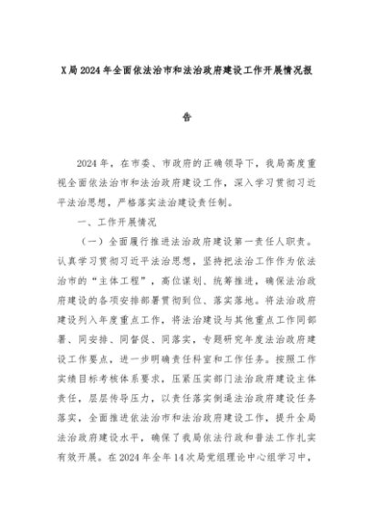【七哥公文】2025年:X局2024年全面依法治市和法治政府建设工作开展情况报告+更多免费公文+VX:QiGeGongWen2024