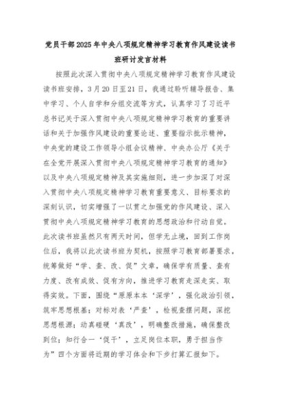 【七哥公文】2025年:党员干部2025年中央八项规定精神学习教育作风建设读书班研讨发言材料+更多免费公文+VX:QiGeGongWen2024