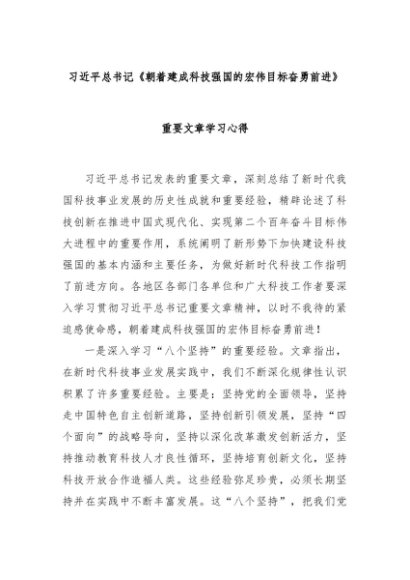 【七哥公文】2025年:习近平总书记《朝着建成科技强国的宏伟目标奋勇前进》重要文章学习心得+更多免费公文+VX:QiGeGongWen2024
