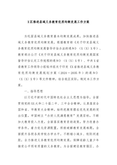 / 【七哥公文】2025年:X区推进县域义务教育优质均衡发展工作方案+更多免费公文+VX:QiGeGongWen2024