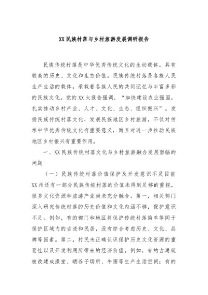 【七哥公文】2025年:XX民族村落与乡村旅游发展调研报告+更多免费公文+VX:QiGeGongWen2024