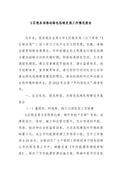 / 【七哥公文】2025年:X区税务局推动绿色低碳发展工作情况报告+更多免费公文+VX:QiGeGongWen2024