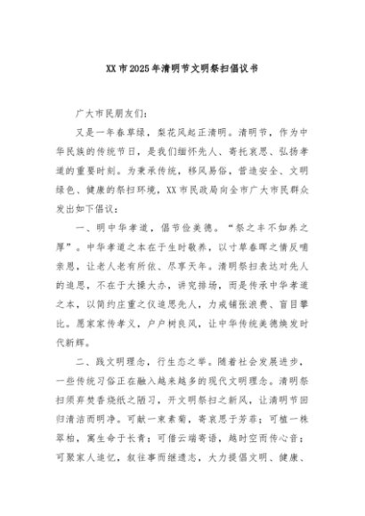 / 【七哥公文】2025年:XX市2025年清明节文明祭扫倡议书+更多免费公文+VX:QiGeGongWen2024