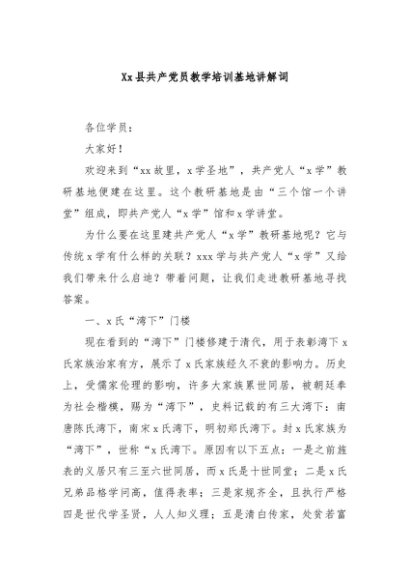 / 【七哥公文】2025年:Xx县共产党员教学培训基地讲解词+更多免费公文+VX:QiGeGongWen2024