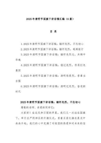 / 【七哥公文】2025年:(6篇)2025年清明节国旗下讲话稿汇编+更多免费公文+VX:QiGeGongWen2024
