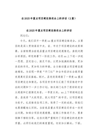 / 【七哥公文】2025年:(2篇)在2025年重点项目建设推进会上的讲话+更多免费公文+VX:QiGeGongWen2024