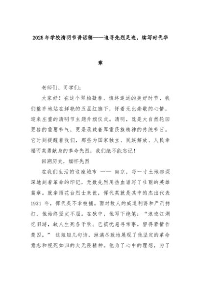 【七哥公文】2025年:2025年学校清明节讲话稿——追寻先烈足迹,续写时代华章+更多免费公文+VX:QiGeGongWen2024