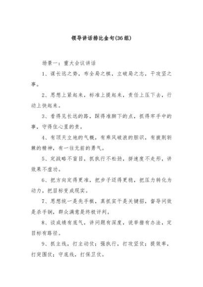 / 【七哥公文】2025年:(36组)领导讲话排比金句+更多免费公文+VX:QiGeGongWen2024