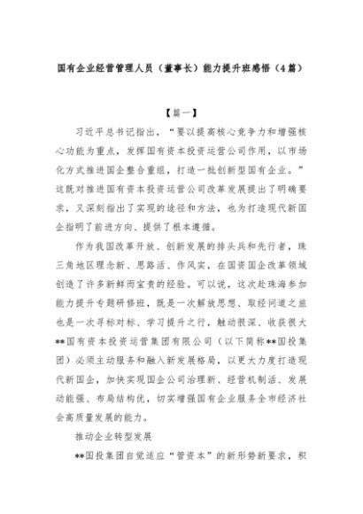 【七哥公文】2025年:(4篇)国有企业经营管理人员(董事长)能力提升班感悟+更多免费公文+VX:QiGeGongWen2024