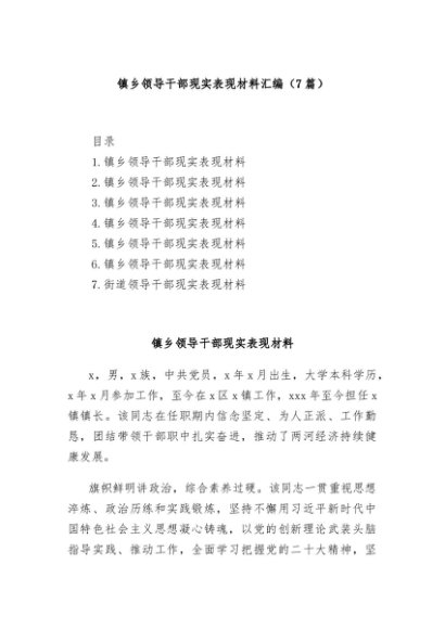 / 【七哥公文】2025年:(7篇)镇乡领导干部现实表现材料汇编+更多免费公文+VX:QiGeGongWen2024
