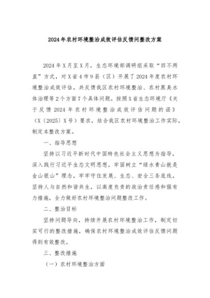 / 【七哥公文】2025年:2024年农村环境整治成效评估反馈问整改方案+更多免费公文+VX:QiGeGongWen2024