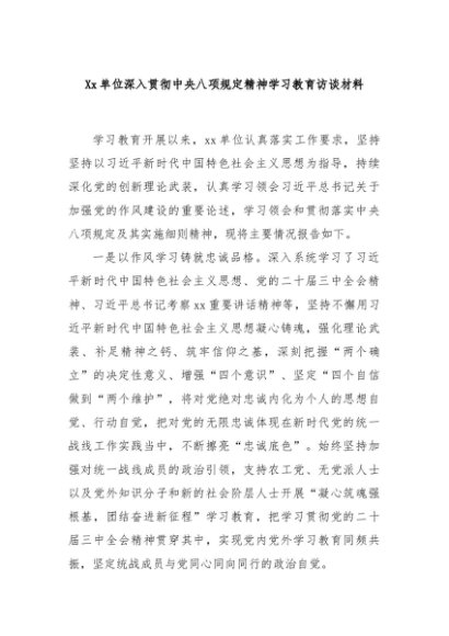 / 【七哥公文】2025年:Xx单位深入贯彻中央八项规定精神学习教育访谈材料+更多免费公文+VX:QiGeGongWen2024