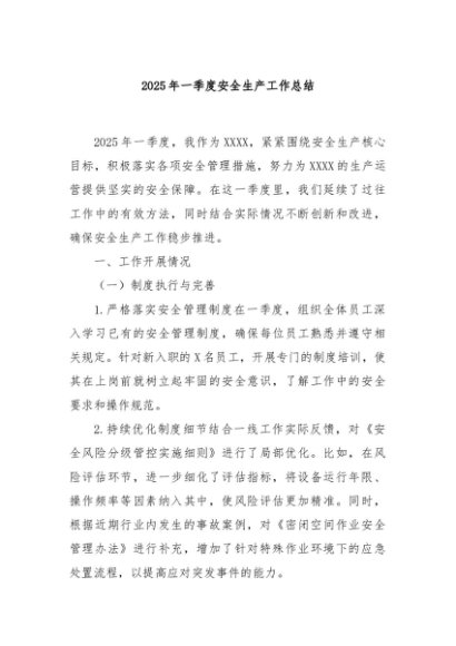 / 【七哥公文】2025年:2025年一季度安全生产工作总结+更多免费公文+VX:QiGeGongWen2024