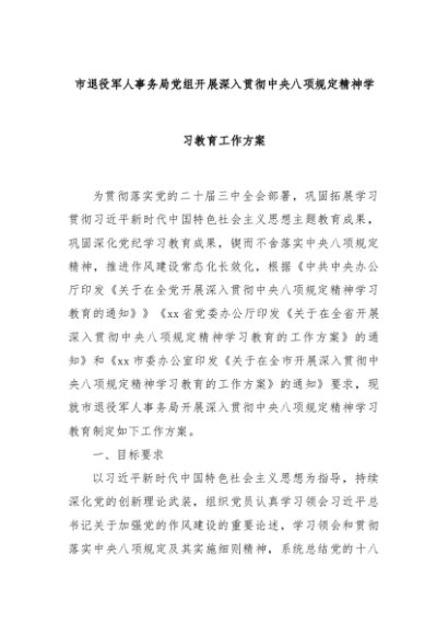 【七哥公文】2025年:市退役军人事务局党组开展深入贯彻中央八项规定精神学习教育工作方案+更多免费公文+VX:QiGeGongWen2024