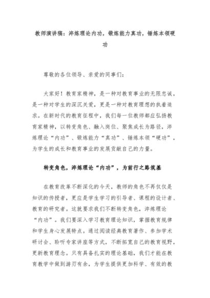 【七哥公文】2025年:教师演讲稿:淬炼理论内功,锻炼能力真功,锤炼本领硬功+更多免费公文+VX:QiGeGongWen2024