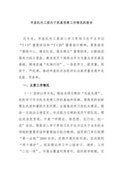 / 【七哥公文】2025年:市直机关工委关于抓基党建工作情况的报告+更多免费公文+VX:QiGeGongWen2024