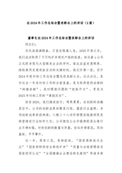 / 【七哥公文】2025年:(2篇)在2024年工作总结会暨表彰会上的讲话+更多免费公文+VX:QiGeGongWen2024