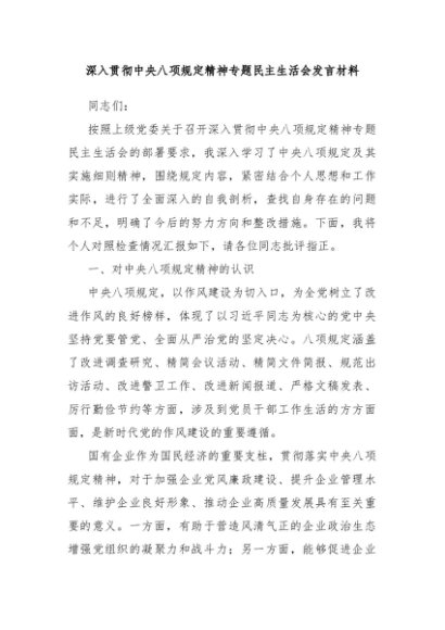 / 【七哥公文】2025年:深入贯彻中央八项规定精神专题民主生活会发言材料+更多免费公文+VX:QiGeGongWen2024