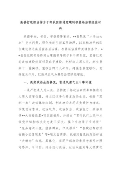 【七哥公文】2025年:某县打造担当作为干部队伍推进党建引领基层治理经验材料+更多免费公文+VX:QiGeGongWen2024