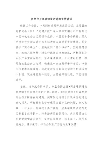 / 【七哥公文】2025年:在单位开展政治谈话时的主持讲话+更多免费公文+VX:QiGeGongWen2024