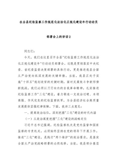 【七哥公文】2025年:在全县纪检监察工作规范化法治化正规化建设年行动动员部署会上的讲话2+更多免费公文+VX:QiGeGongWen2024