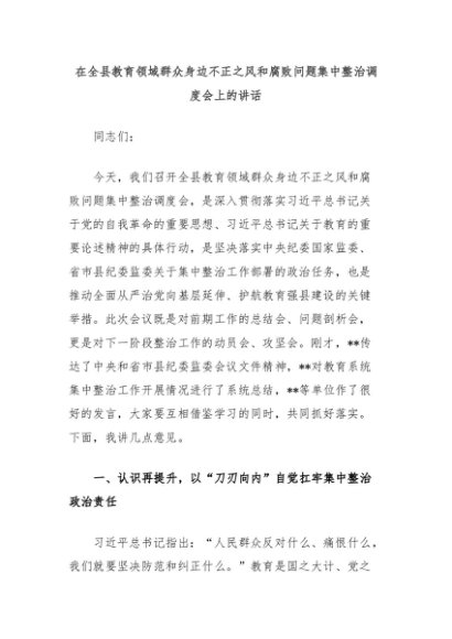 【七哥公文】2025年:在全县教育领域群众身边不正之风和腐败问题集中整治调度会上的讲话+更多免费公文+VX:QiGeGongWen2024