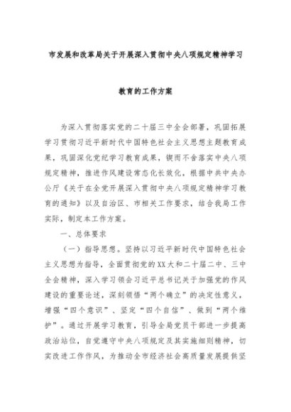 【七哥公文】2025年:市发展和改革局关于开展深入贯彻中央八项规定精神学习教育的工作方案+更多免费公文+VX:QiGeGongWen2024