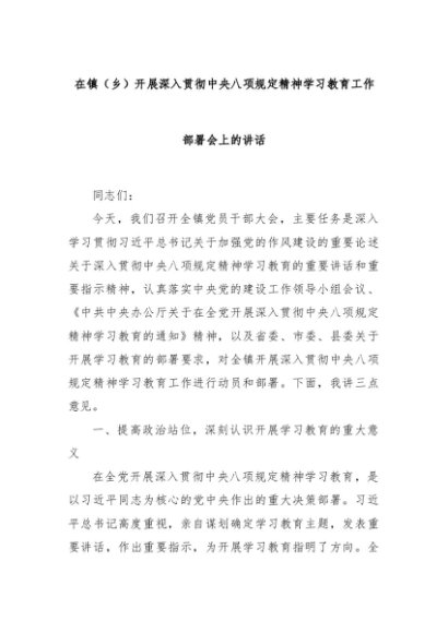【七哥公文】2025年:在镇(乡)开展深入贯彻中央八项规定精神学习教育工作部署会上的讲话+更多免费公文+VX:QiGeGongWen2024