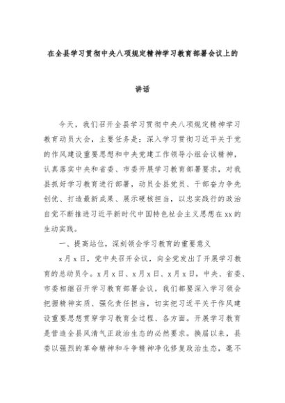 【七哥公文】2025年:在全县学习贯彻中央八项规定精神学习教育部署会议上的讲话+更多免费公文+VX:QiGeGongWen2024