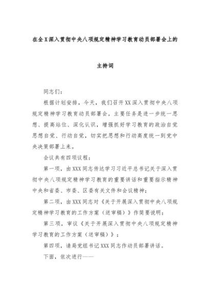 【七哥公文】2025年:在全X深入贯彻中央八项规定精神学习教育动员部署会上的主持词+更多免费公文+VX:QiGeGongWen2024