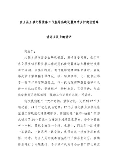 【七哥公文】2025年:在全县乡镇纪检监察工作规范化建设暨廉洁乡村建设观摩讲评会议上的讲话+更多免费公文+VX:QiGeGongWen2024