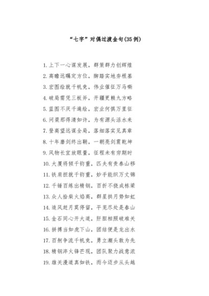 / 【七哥公文】2025年:(35例)“七字”对偶过渡金句+更多免费公文+VX:QiGeGongWen2024