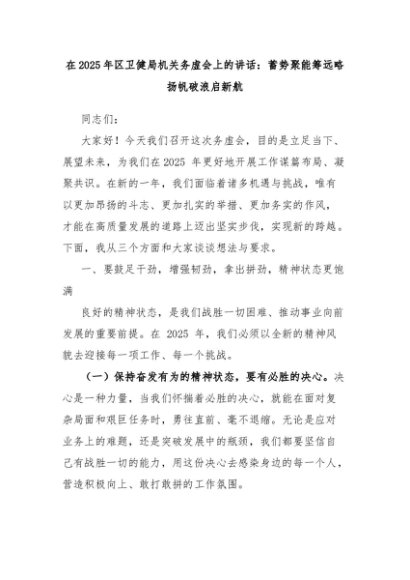 【七哥公文】2025年:在2025年区卫健局机关务虚会上的讲话:蓄势聚能筹远略 扬帆破浪启新航+更多免费公文+VX:QiGeGongWen2024