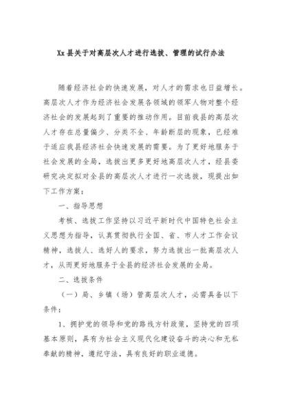 / 【七哥公文】2025年:Xx县关于对高层次人才进行选拔、管理的试行办法+更多免费公文+VX:QiGeGongWen2024