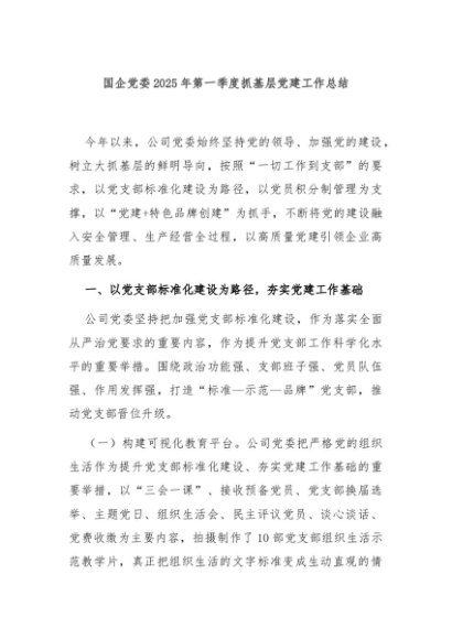 / 【七哥公文】2025年:国企党委2025年第一季度抓基层党建工作总结+更多免费公文+VX:QiGeGongWen2024