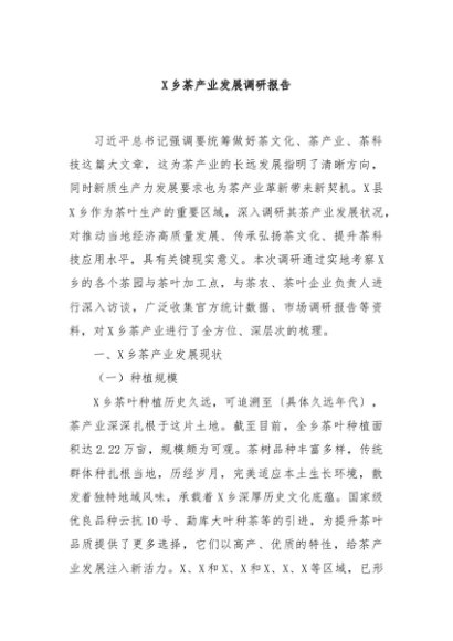 【七哥公文】2025年:X乡茶产业发展调研报告+更多免费公文+VX:QiGeGongWen2024