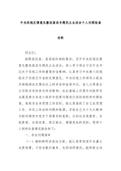 【七哥公文】2025年:中央巡视反馈意见整改落实专题民主生活会个人对照检查材料+更多免费公文+VX:QiGeGongWen2024