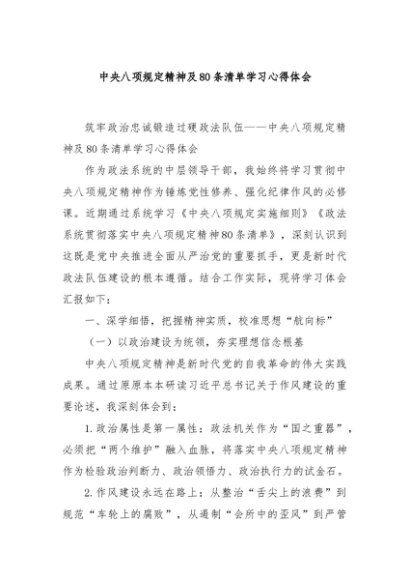 【七哥公文】2025年:中央八项规定精神及80条清单学习心得体会+更多免费公文+VX:QiGeGongWen2024