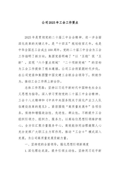 / 【七哥公文】2025年:公司2025年工会工作要点+更多免费公文+VX:QiGeGongWen2024