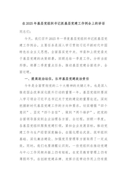 【七哥公文】2025年:在2025年基层党组织书记抓基层党建工作例会上的讲话+更多免费公文+VX:QiGeGongWen2024
